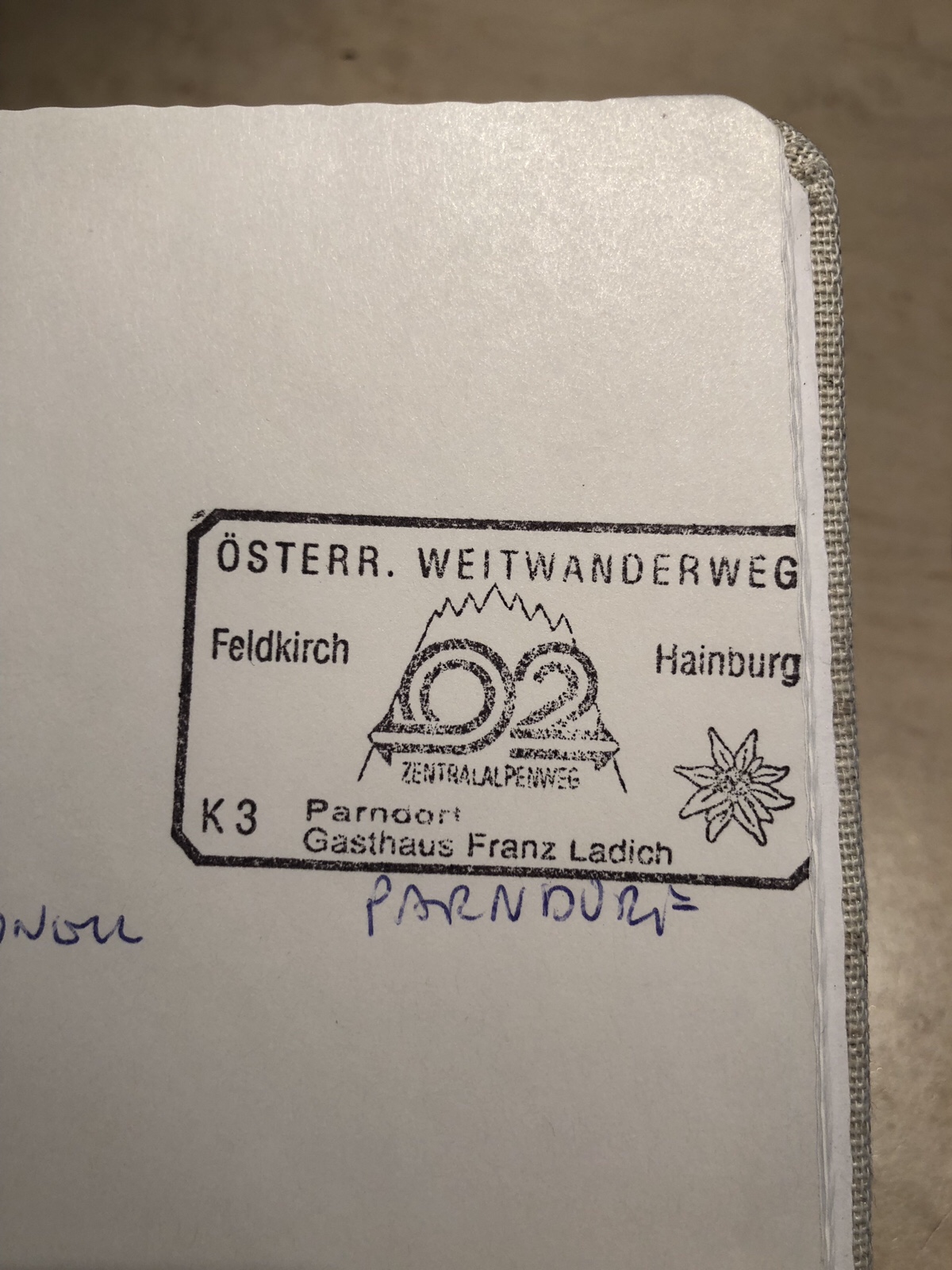 Das Wetter schlägt langsam Richtung Gewitter um und Mathias macht sich Sorgen, ob wir trocken bleiben. Aber noch hält es aus und wir erreichen kurz nach 15 Uhr die ersten Häuser von Neusiedl – auch dort wurde heute Erstkommunion gefeiert. In Neusiedl verlasse ich zum ersten Mal den Zentralalpenweg – aber Mathias besteht darauf, dass wir uns ein Eis im Eissalon seiner Wahl genehmigen. Gut, dafür nehme ich den kleinen Umweg gerne in Kauf, hole ich mir dafür auch gleich im Eissalon meinen Stempel.