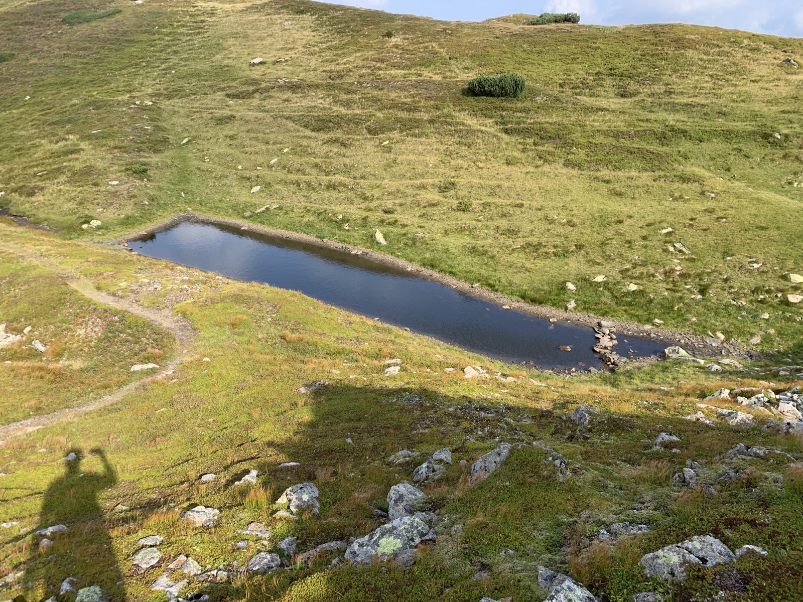 Nach einer trotzdem langen Anreise und einem gemütlichen Tratsch mit der Schwoagerin starte ich um 08:50 von der Schwabergerhütte los Richtung Große Windluckn (nachdem anscheinend viele Schwierigkeiten haben, den Weg zu finden habe ich den Track hier auch hochgeladen). Der Weg führt auf der Forststraße Richtung Talschluss, nach 200 m quert dieser einen Bach und man verlässt den Weg rechts den Hang entlang (Steigspuren und Markierung leicht erkennbar). Nach ein paar Minuten kommt man zu ein paar zusammenstehenden Bäumen, die man auf der rechten, steileren Seite passiert. Oberhalb der Baumgruppe erreicht man dann die offene Alm und der Steig ist aber hier gut erkennbar. Wichtig ist es, nach insgesamt ungefähr 10-15 min biegt man endgültig nach links ab und verlässt die Almfläche der Schwabergalm. Kurz vor der Windluckn teilt sich der Weg – ich gehe die linke, etwas kürzere und steilere Variante – die Wege führen aber nach ein paar Minuten wieder zusammen. So erreiche ich nach 35 min die Große Windluckn und bin damit wieder „on track“.