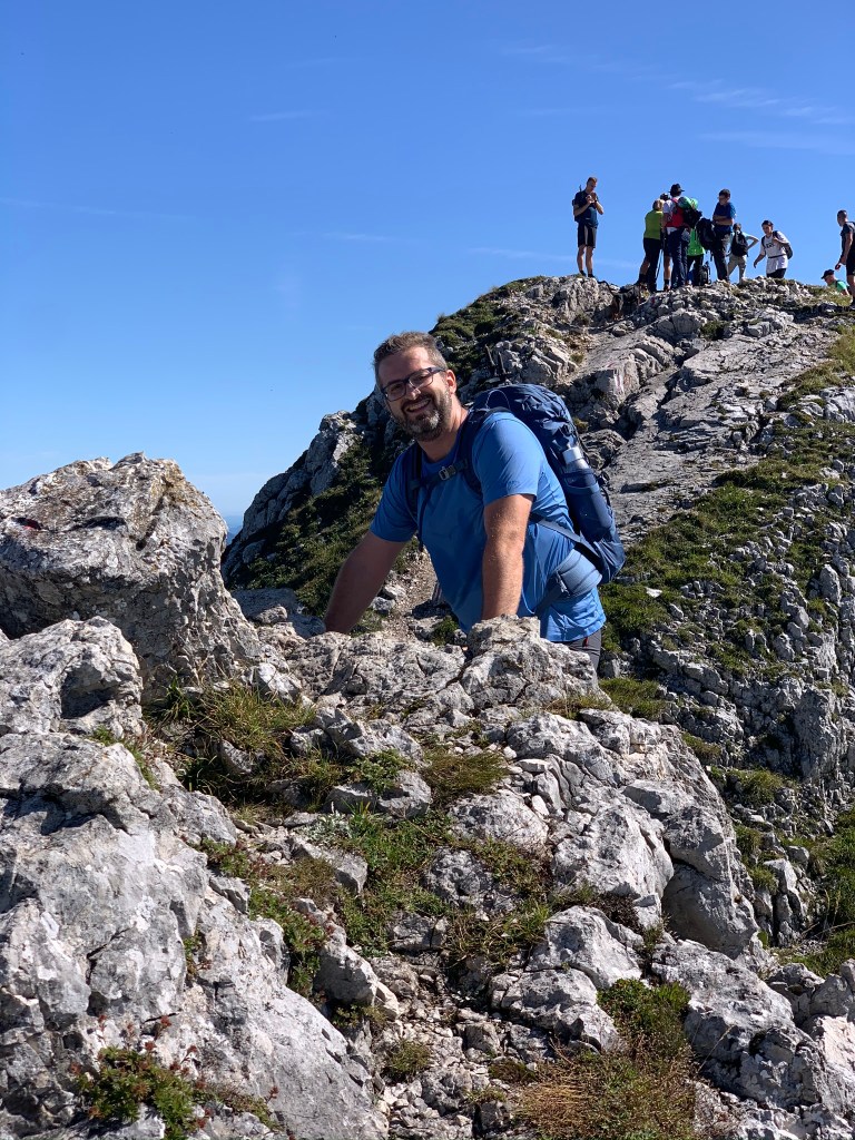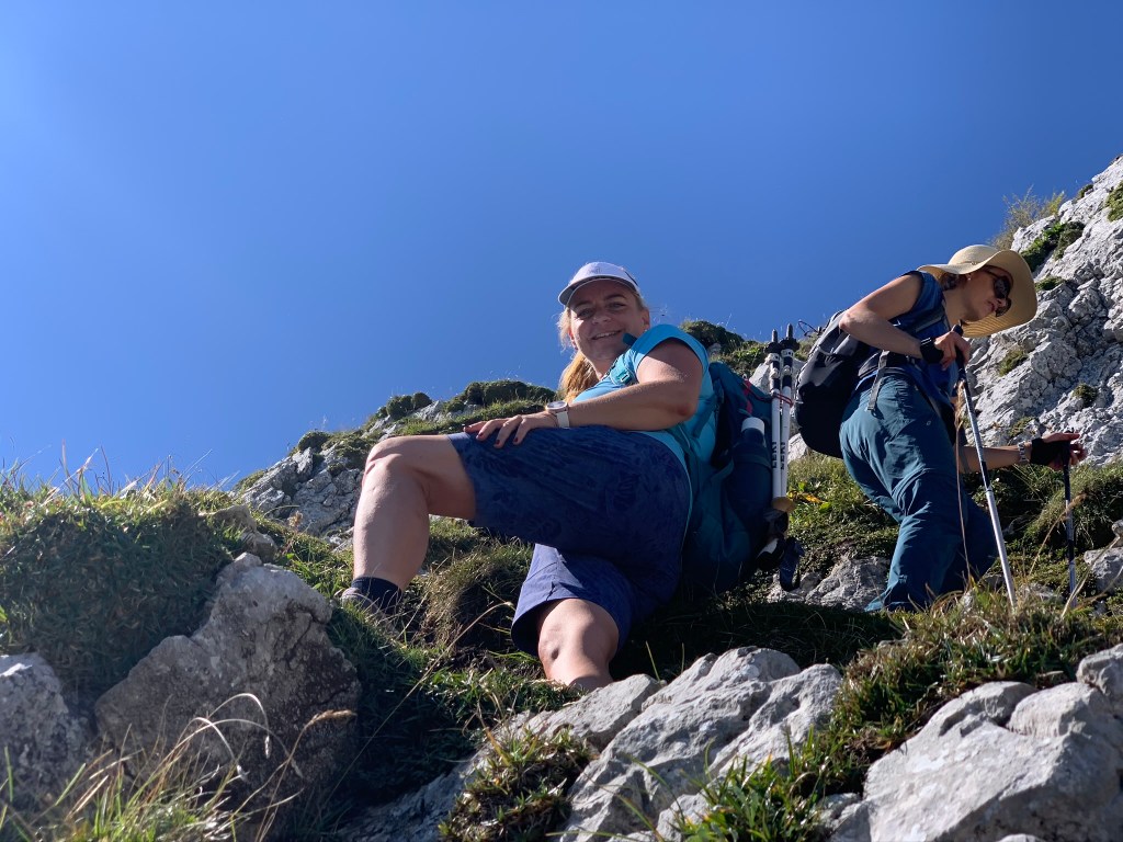 Im Kamm holen wir dann überraschend die Familie der Cousine meiner Frau ein, wo auch einige jüngere Burschen mit von der Partie sind. So bleiben wir bei der Gruppe und sind natürlich etwas langsamer (aber noch immer recht brav unterwegs – die Burschen sind echt top drauf). So werden wir auch von einigen anderen Wanderern teilweise etwas unwirsch überholt – direkt unangenehm ist das manchmal … .