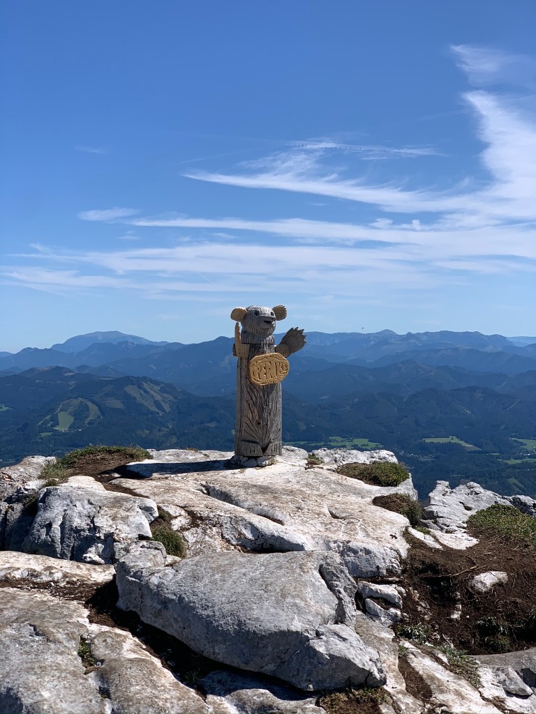Nach insgesamt knapp 4 Stunden Wegzeit erreichen wir um 12:15 den Gipfel – ich habe noch nie so viele Menschen am Ötscher gesehen (und ich war da wirklich schon oft heroben)!