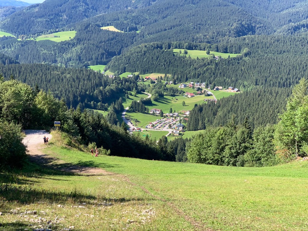 Der Coronasommer 2020 hat mir zwar meinen Weiterweg am Zentralalpenweg vermasselt, aber grundsätzlich ist viel los in Österreichs Bergen – so auch heute am Ötscher. Um 8 Uhr in der Früh ist der Parkplatz Raneck mehr als gefüllt (was am Abend einigen PKW Fahrern einen Spendenaufruf der Polizei bescheren wird) und auch am Parkplatz beim Großen Ötscherlift ist schon sehr viel los. So kommt es uns mehr als gelegen, dass wir zufällig ein Taxi finden, welches uns den Hatscher nach hinten erspart. Heute begleiten mich neben meiner Frau noch meine Cousine und ihr Mann, welche beide zum ersten Mal den Rauhen Kamm bezwingen werden.