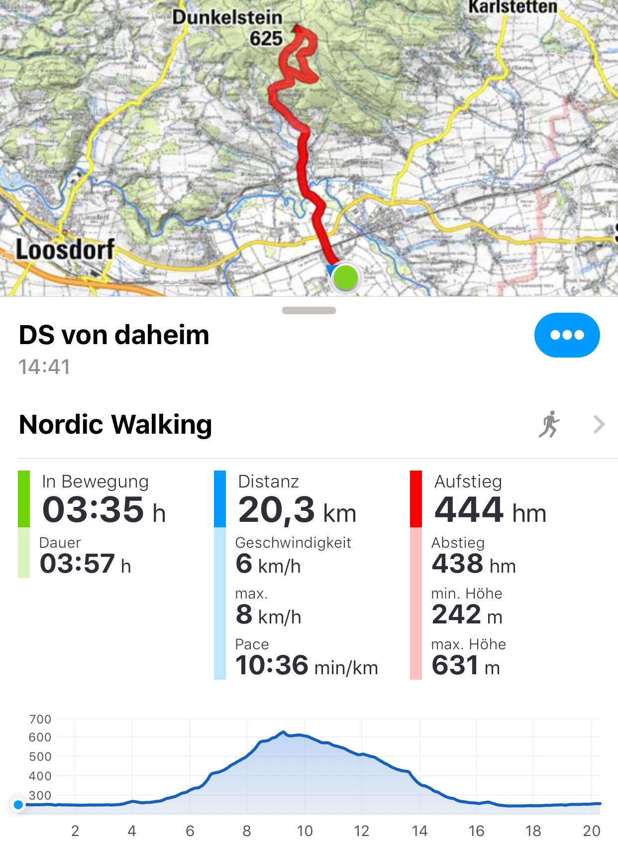 Meine heutige Tagesleistung, zumindest meint das meine App. Das Reiten als Sport ist übrigens nur deswegen ausgewählt, weil ich damit die Etappen am ZAW bequem filtern kann.