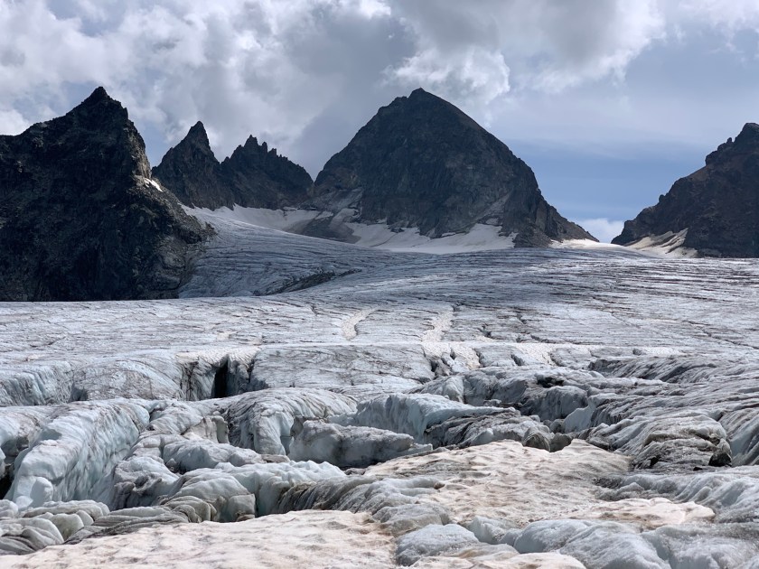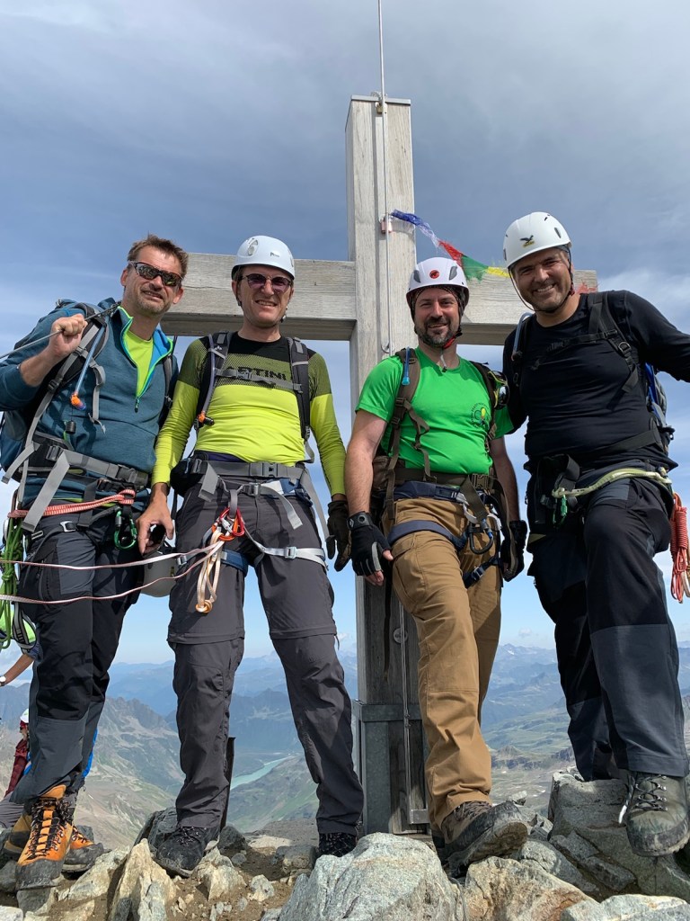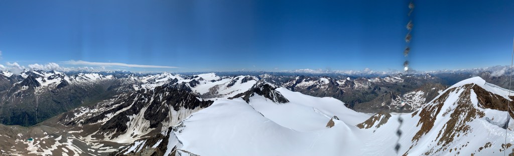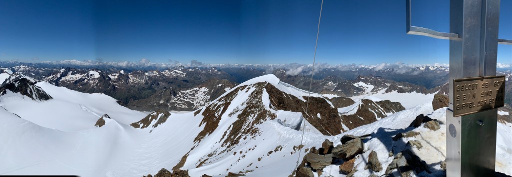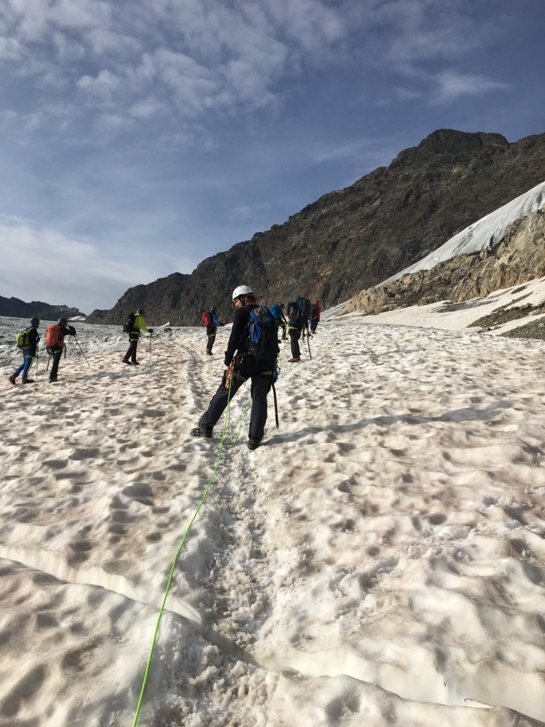 Der Aufenthalt auf der Adamekhütte wird einen durch ein sehr freundliches Hüttenteam mehr als angenehm gestaltet und die Hütte präsentiert sich auch als sehr sauber und gut geführt. Im Gespräch mit dem Wirten bewahrheiten sich aber die Befürchtungen der späten Jahreszeit – beide Gletscher sind schon recht marod und beim Aufstieg müssen zwei Umwege gemacht werden – einmal wegen Steinschlag und einmal wegen großer Spaltengefahr im Bereich des Bergschrunds.