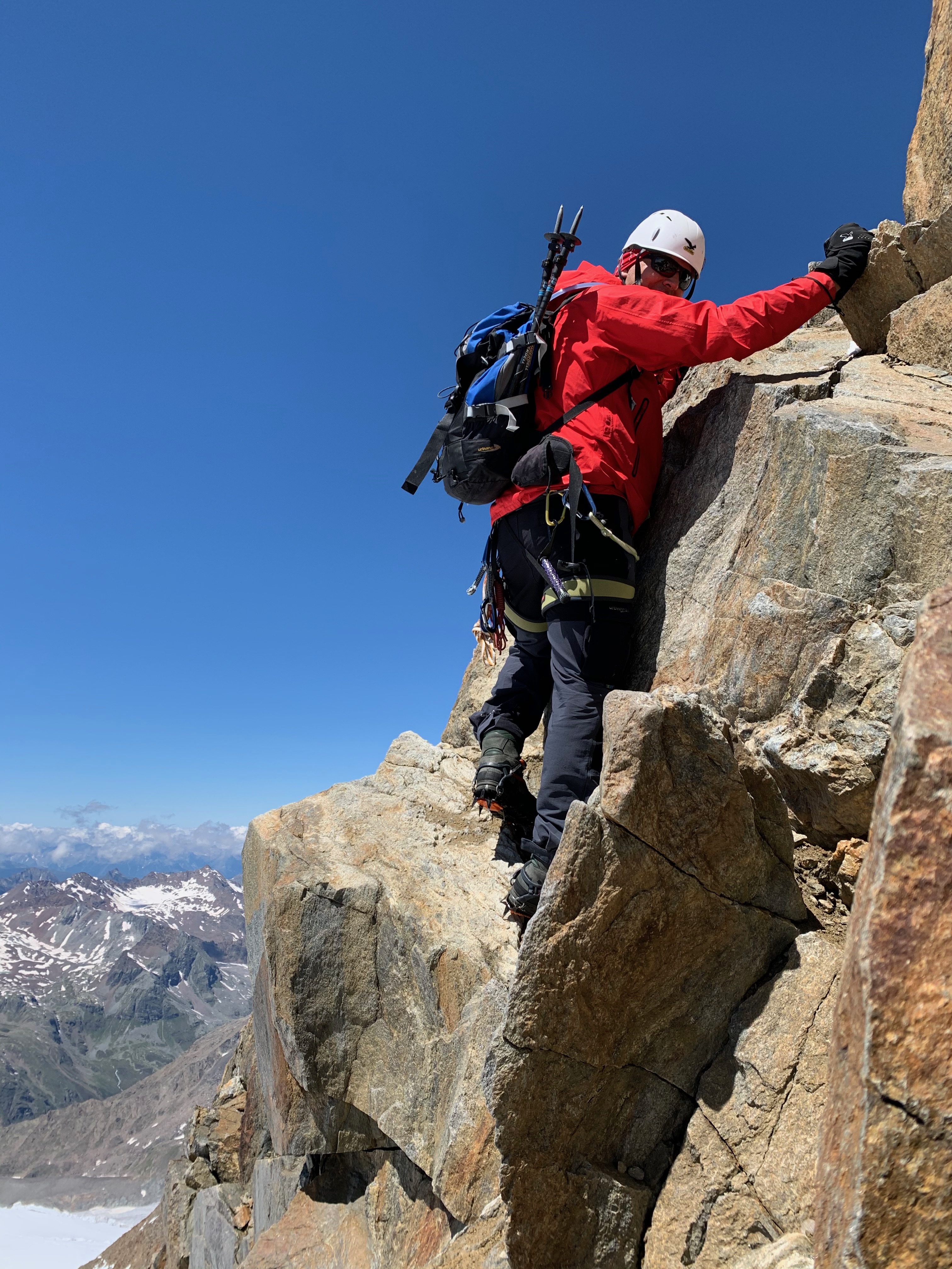 Der Aufenthalt auf der Adamekhütte wird einen durch ein sehr freundliches Hüttenteam mehr als angenehm gestaltet und die Hütte präsentiert sich auch als sehr sauber und gut geführt. Im Gespräch mit dem Wirten bewahrheiten sich aber die Befürchtungen der späten Jahreszeit – beide Gletscher sind schon recht marod und beim Aufstieg müssen zwei Umwege gemacht werden – einmal wegen Steinschlag und einmal wegen großer Spaltengefahr im Bereich des Bergschrunds.
