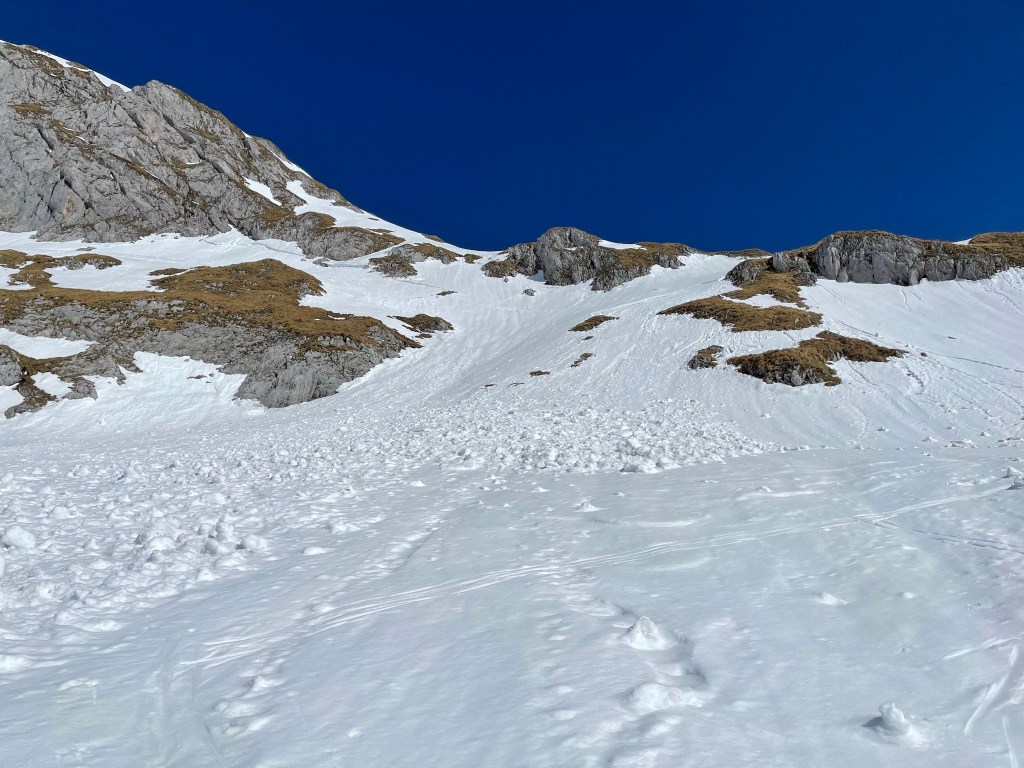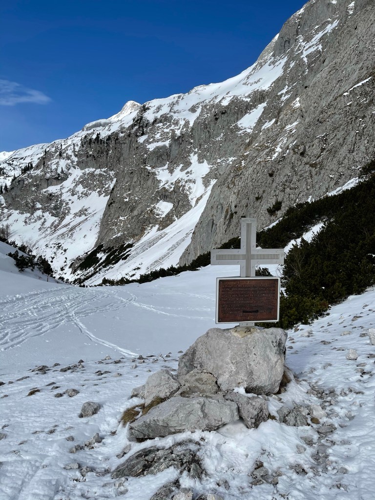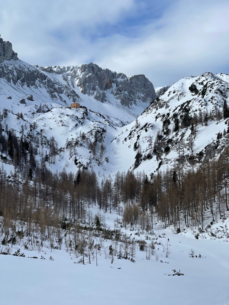 Den Weg kennen wir schon von vor 2 Wochen und hier hat sich auch nix geändert – nur der Schnee ist etwas weniger geworden und es ist heute merklich wärmer und nicht eisig. Das merken wir auch bei der Abfahrt vom Franzosenkreuz – die geht heute deutlich weniger weit. Nach 2:50 sind wir bei der Voisthalerhütte und machen hier wieder eine kurze Pause.