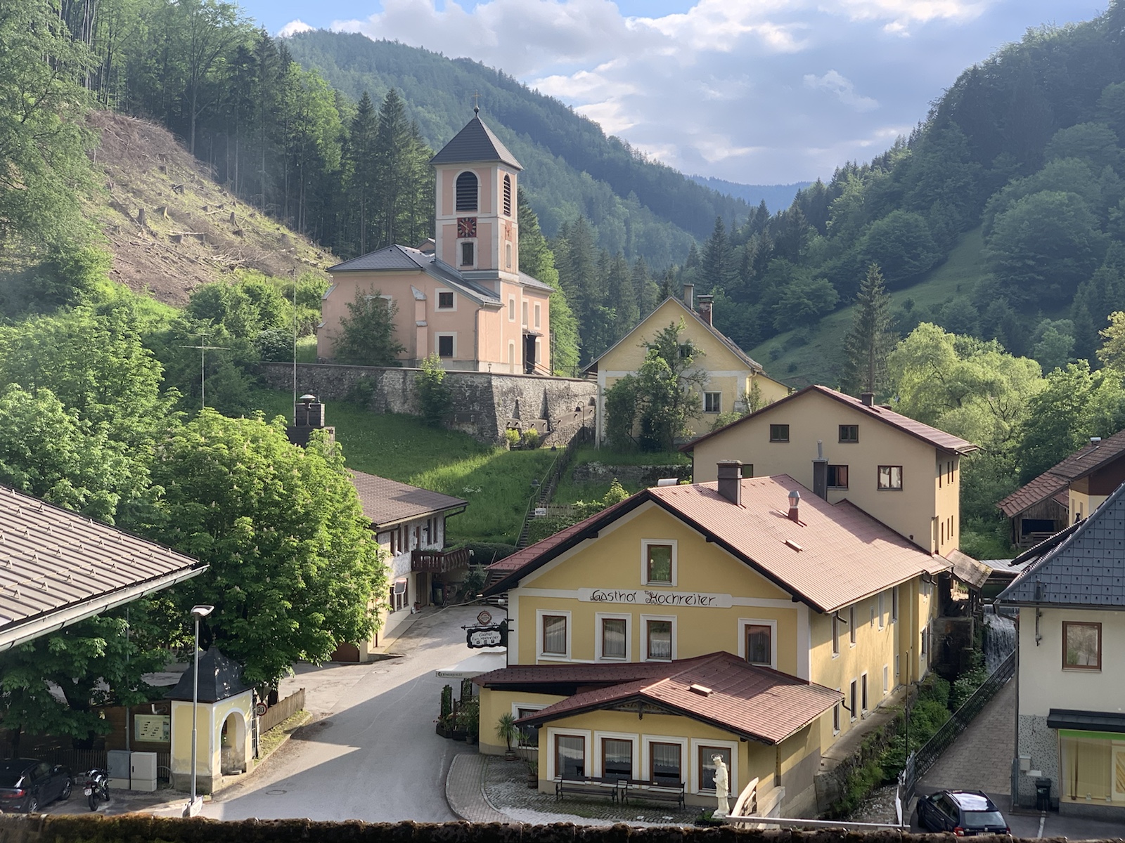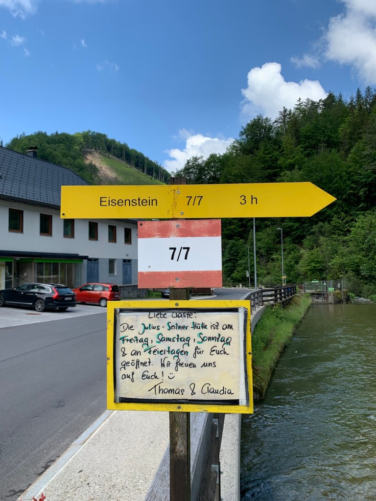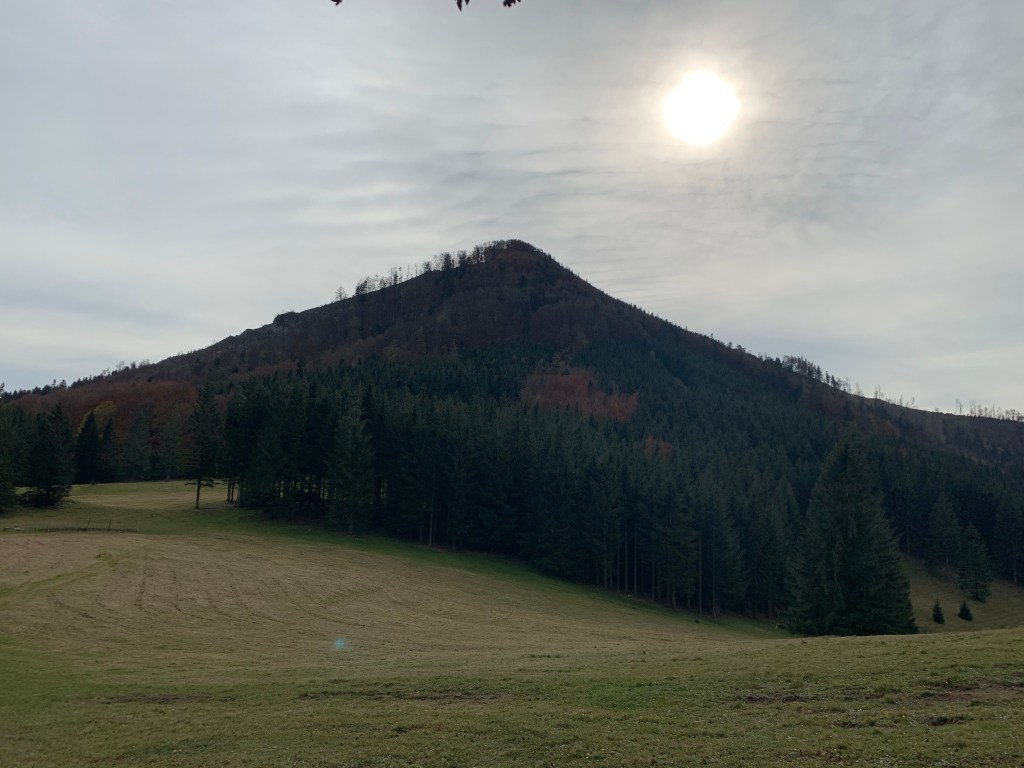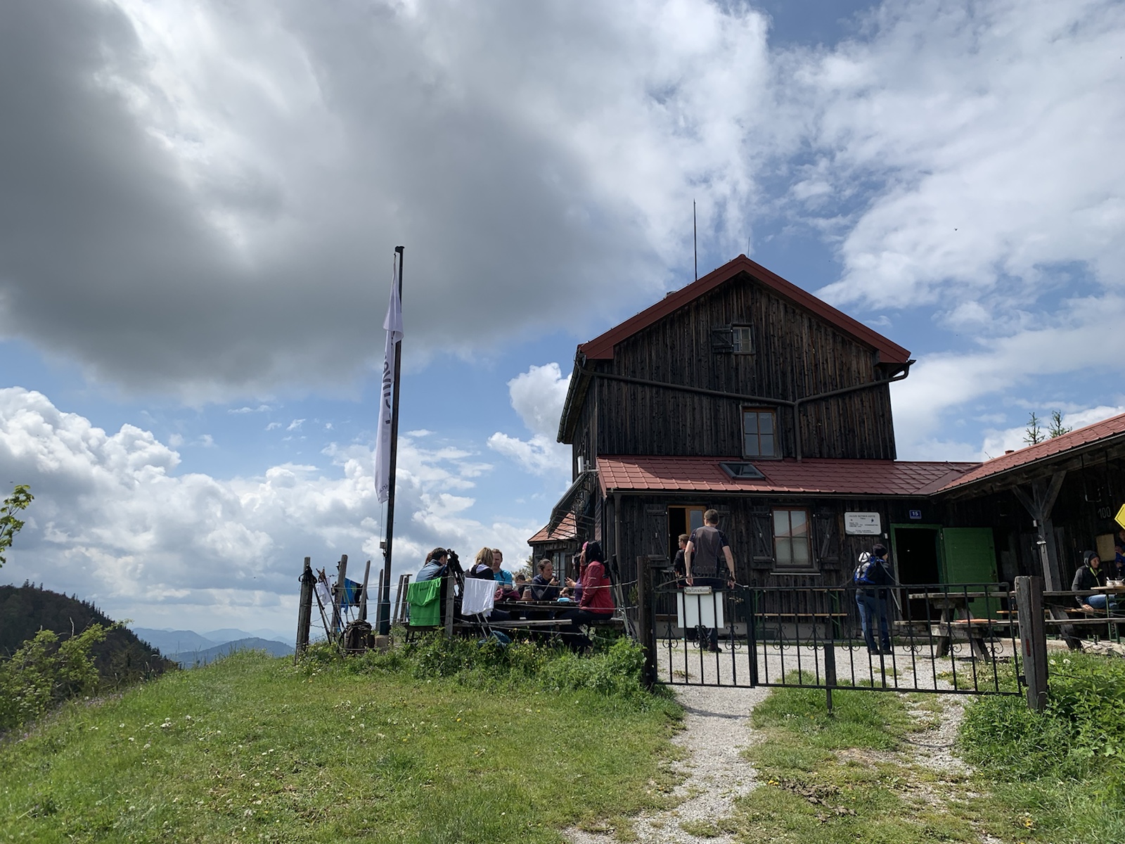 Um 9:10 starten wir am Ende der Soisstraße los Richtung SO „durch“ das Sägewerk. Dann gleich links hinaus marschieren wir stetig ansteigend durch den Wald. Nach 50 Minuten erreichen wir eine große Lichtung, wir bleiben aber am Waldrand. Am Ende der Lichtung wird der Weg nun deutlich steiler – zuerst nochmal durch den Wald – dann steil durch Buschwerk – bis wir nach einem letzten kurzen flachen Stück um 11 Uhr nach knapp 2h Gehzeit auf dem Otto-Kandler-Haus eintreffen. Kurz vor dem Gipfel treffen wir auch auf den Mariazellerweg (NÖ 06er).